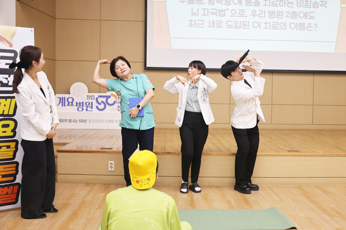 ¸Å³â 10¿ù 10ÀÏÀº ¡®¼¼°è Á¤½Å°Ç°ÀÇ ³¯¡¯ÀÔ´Ï´Ù. Á¤½Å°Ç°ÀÇ Á߿伺À» ¾Ë¸®°í, Á¤½ÅÁúȯ¿¡ ´ëÇÑ Æí°ßÀ» ÇØ¼ÒÇϱâ À§ÇØ ÁöÁ¤µÈ ÀÌ ³¯À» ¸Â¾Æ º´µ¿ ¹× ³·º´¿ø ȯ¿ìºÐµé°ú ÇÔ²² Á¤½Å°Ç° ¡®°è¿ä°ñµçº§¡¯ Çà»ç¸¦ ÁøÇàÇÏ¿´½À´Ï´Ù. À̹ø Çà»ç´Â ÄûÁî¶ó´Â Ä£¼÷ÇÑ Çü½ÄÀ» ÅëÇØ Á¤½Å°Ç°À» ÀÚ¿¬½º·´°Ô µÇ¤°í, Áñ°Ì°Ô ȯ±âÇÏ´Â ½Ã°£À» ¸¶·ÃÇϰíÀÚ ±âȹµÇ¾ú½À´Ï´Ù.